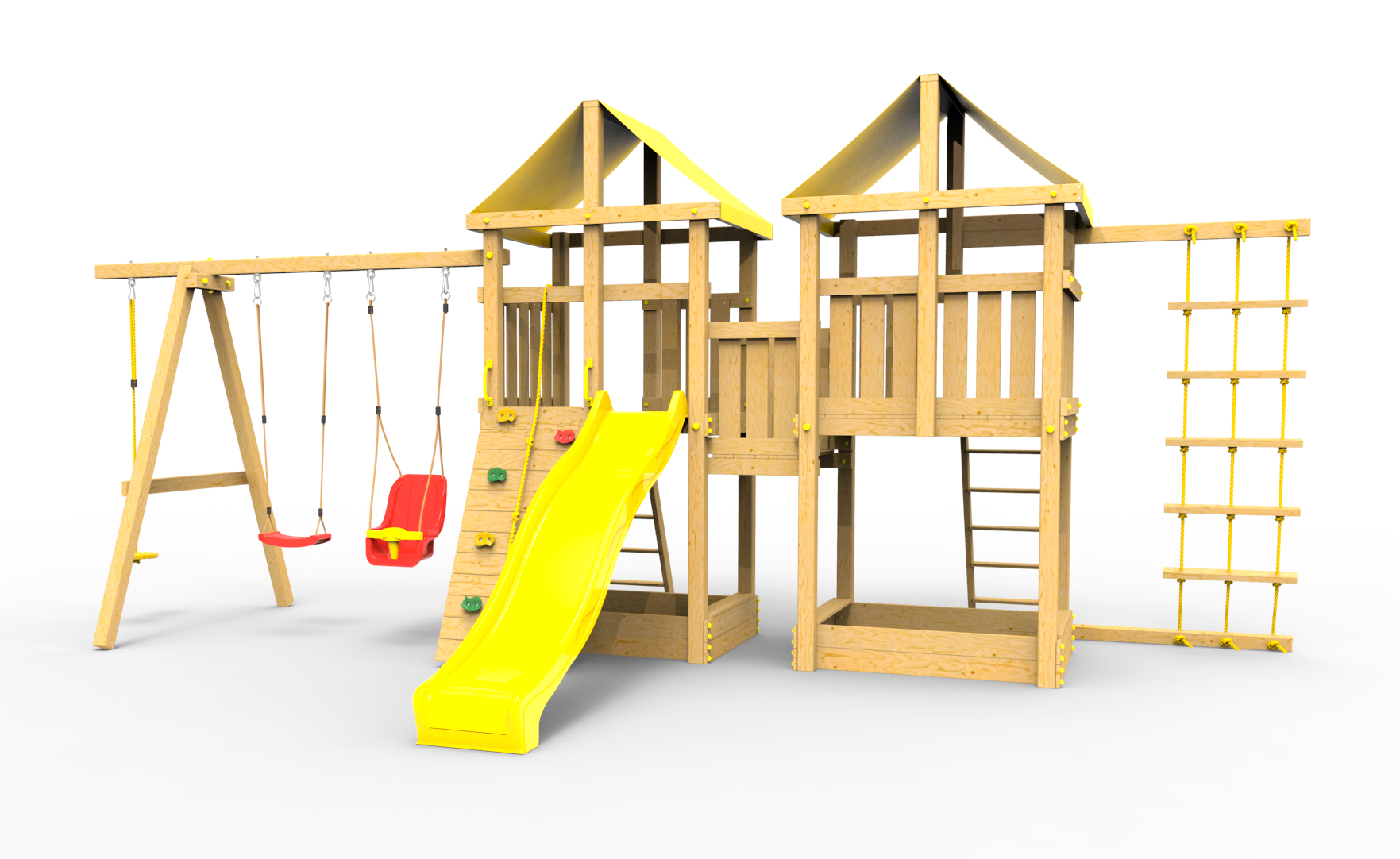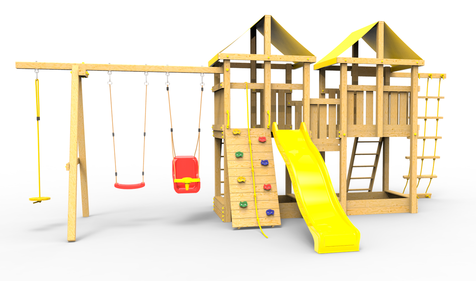Обращаем Ваше внимание, что фактический цвет детской площадки может отличаться от представленных фото на сайте. Специфика окраски нетоксичными пропитками и красителями допускает отклонения в цветовой гамме отгружаемых изделий. Также обратите внимание, что фактический цвет может отличаться из-за цветопередачи устройства на котором Вы смотрите фото.